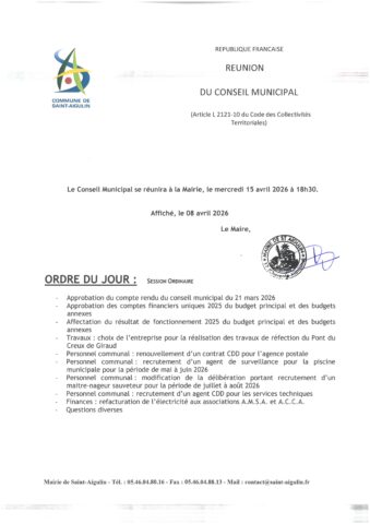Réunion du Conseil Municipal 15 avril 2026